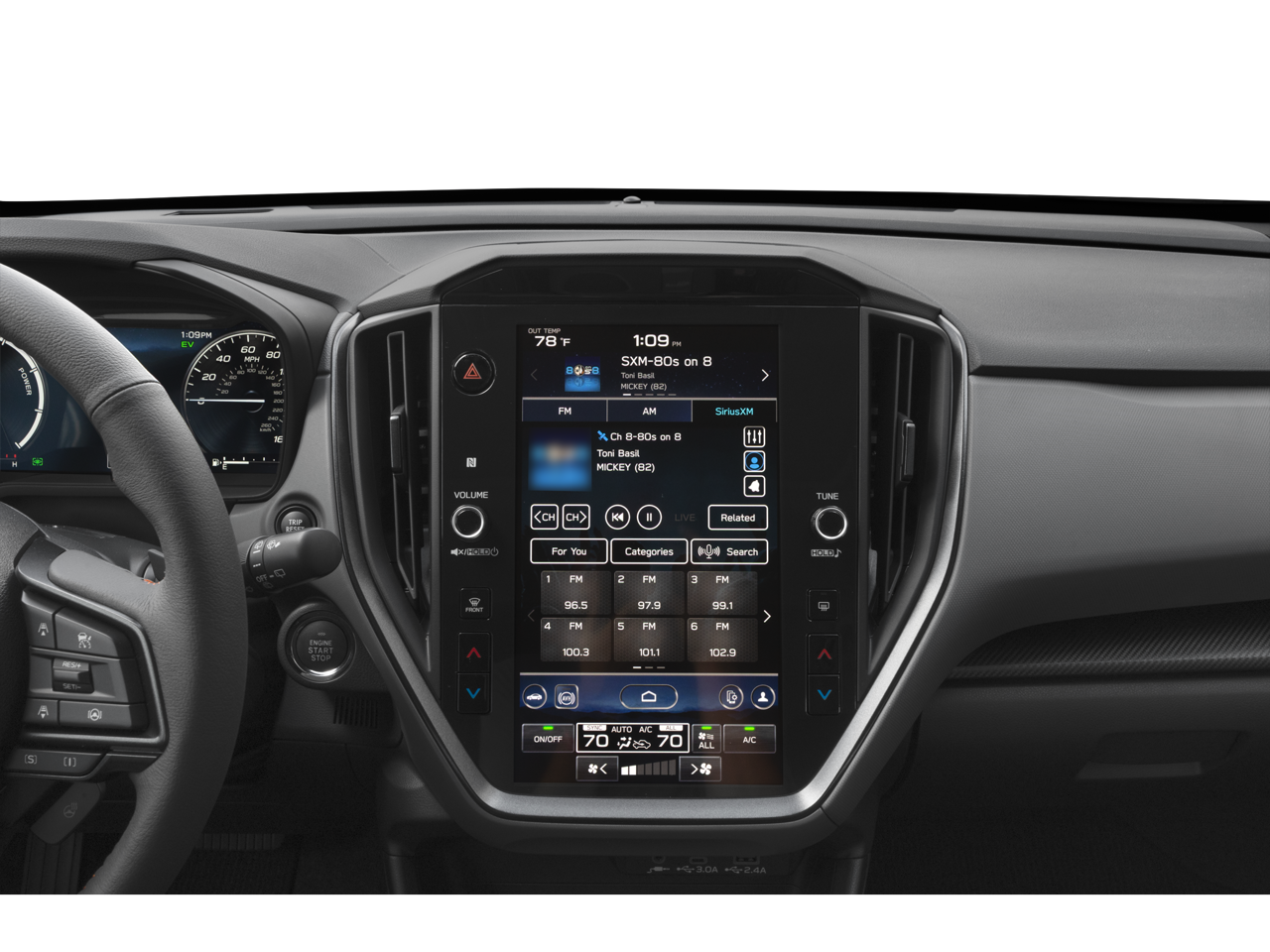 - Radio: Subaru 11.6" Multimedia Navigation System -inc: valet mode, AM/FM stereo, HD Radio, multi-touch gesture high resolution display screen, voice activated controls and navigation, Bluetooth® audio streaming and hands-free phone connectivity, Bluetooth® hands-free SMS text messaging connectivity, TomTom navigation software w/what3words, iPod control capability, smartphone integration: wired and wireless Android Auto w/full screen view and wireless Apple CarPlay w/full screen view, USB and Over The Air (OTA) audio system update, TomTom navigation system update: USB/map Over-the-Air (OTA) (3 years free map updates), steering wheel audio system and Bluetooth® control switches, harman kardon speaker system w/10 speakers (4 stacked dash panel side coaxial speakers, 2 front door speakers and 4 stacked subwoofer rear door coaxial speakers) and 432 watt equivalent maximum output amplifier, illuminated 3.5mm auxiliary input jack, illuminated front USB A and C input/charge ports, connected services operation indicator, SOS emergency assistance: red SOS button and enhanced roadside assistance: blue i-button
