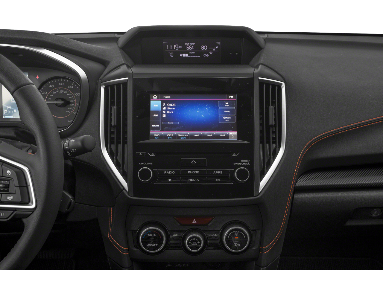 - Radio: Subaru STARLINK 6.5" Multimedia Plus System -inc: AM/FM stereo, HD Radio, single disc CD player w/MP3/WMA/CRR/RW file capability, multi-touch gesture high resolution display screen, voice activated controls, Bluetooth® audio streaming and hands-free phone connectivity, Bluetooth® hands-free SMS text messaging connectivity, iPod control capability, SiriusXM All Access Radio (4 months free trial/subscription required after), SiriusXM Travel Link (4 months free trial/subscription required after), smartphone integration: AHA, Android Auto, CarPlay, Pandora and STARLINK cloud applications, USB audio system, 6 speakers (2 dash panel tweeter, 2 front door and 2 rear door), 3.5mm auxiliary input jack, dual USB input/charge ports and roof mounted audio, satellite and connected services antenna