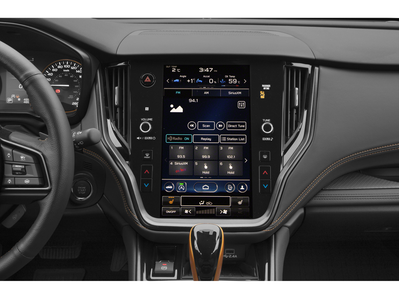 - Radio: Subaru STARLINK 11.6" Multimedia Plus Sys -inc: AM/FM stereo, HD Radio, valet mode, multi-touch gesture high resolution display screen, voice activated controls, Bluetooth® audio streaming and hands-free phone connectivity w/SMS text messaging (refer to subaru.com for cell phone compatibility), Near Field Communication (NFC), iPod control capability, SiriusXM All Access radio (4 months free trial/subscription required after), SiriusXM Travel Link (4 months free trial/subscription required after), smartphone integration: Android Auto and CarPlay w/full screen view and wireless connection and STARLINK cloud applications (refer to subaru.com for app availability), USB and Over The Air (OTA) audio system update, 6 speakers, illuminated 3.5mm auxiliary input jack and illuminated USB-A and USB-C input/charge ports